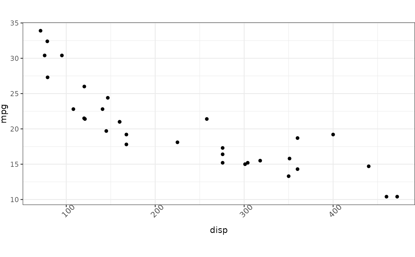 ggplot2::ggplot(mtcars, ggplot2::aes(disp, mpg)) +